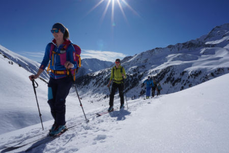 Die Alpin – Tiefschneetage 2018 im Kühtai und Kleinwalsertal waren wieder einmal ein Fest für alle Skitourenfreunde. Die Bedingungen waren gemischt, von Powderturns bis Plattenpulver ( = Bruchharsch) war alles dabei, und wurde von den Gruppeb bestens gemeistert. Zweimal 600 Teilnehmer, jeweils 55 Bergführer, hunderte Skier und die neuesten Ausrüstungshighlights powered by Sport Conrad sorgten für zwei gelungene Wochenenden.