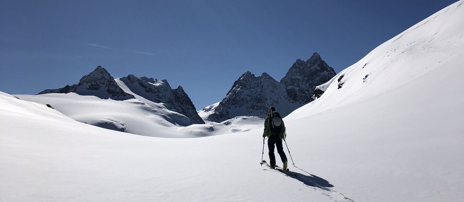 Abfahrt: Off-Piste bzw. Skitourenerfahrung erforderlich, sichere Skitechnik im freien Skiraum.