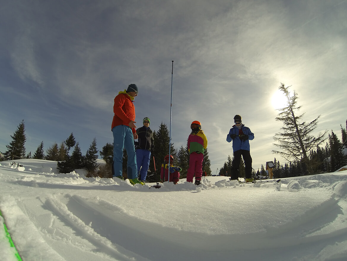 Es besteht die Möglichkeit, Bindungsadapter, LVS Geräte, etc. auszuprobieren und so ordentlich ausgerüstet erste Tourenversuche zu machen. Am Programm stehen dazu Trainings im Bereich der Lawinenverschüttetensuche und Schneekunde Workshops.