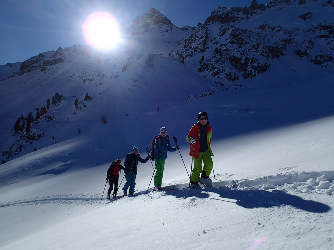 In ein- bis zweitägigen Workshops können Kinder (ca. 8 – 12 Jahre) alle Facetten des Skitourengehens und Variantenfahren zusammen mit unseren Bergführern erleben. Der Schwerpunkt liegt hier beim gemeinsamen Erlebnis als Familie. Materialkunde, Lawinengefahr, Gehtechnik sowie Materialtest mit der kindgerechten Ausrüstung unserer Industriepartner.