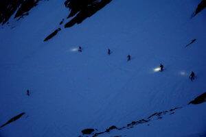 Inhalt / Level 2 der Skihochtouren-Ausbildung bildet zum eigenverantwortlichen Begehen von leichten (Silvretta) und schweren (Berner Alpen) Skihochtouren aus. Voraussetzung zur Teilnahme ist die Absolvierung der Fundamentals von Skihochtour Level 1 – oder einer gleichwertigen Ausbildung. Es folgen nochmals zwei Tage erweiterte Ausbildung, bevor das Gelernte auf Tour umgesetzt wird. In diesem Praxistraining sind die Teilnehmer dann „selbständig“ unterwegs, die Bergführer stehen permanent beratend und helfend zur Seite.