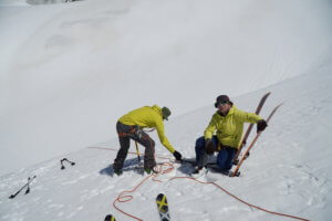 Voraussetzungen / erfolgreiche Absolvierung des Skihochtour Level 1 (oder äquivalente Ausbildung). Kondition für ca. 4 – 6 stündige Aufstiege/Abfahrten, kompetenter Umgang mit der Skihochtouren – und Notfallausrüstung, Grundlagen LVS/Notfall (LVS-Check, Verhalten im Notfall, Lösen einer Einfachverschüttung inkl. Sondieren/Ausschaufeln), Grundlagen Tourenplanung und Lawinengefahrenbeurteilung, Grundlagen Seil -/ Sicherungs-/ Rettungstechnik auf Gletscher und leichten Graten, sichere Steigeisengrundtechnik, komplette Skihochtourenausrüstung