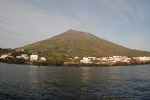 Stromboli / Ganz im NO des Archipels gelegen. Wegen seines ständig feuerspeienden Vulkans, der sich 924 m aus dem Meer erhebt, wird Stromboli als das ‚unruhige Herz’ des Archipels bezeichnet. Zwischen den Zwillingsgipfeln öffnet sich der Hauptkrater – die nachmittägliche Besteigung ist ein Muss – damit man im Dunkel der anbrechenden Nacht das Feuer-Spektakel noch eindrucksvoller erleben kann.