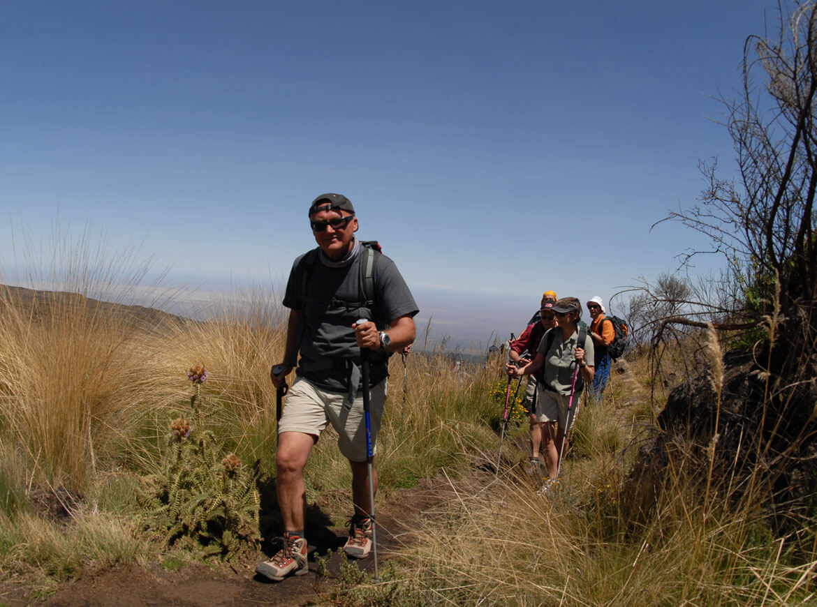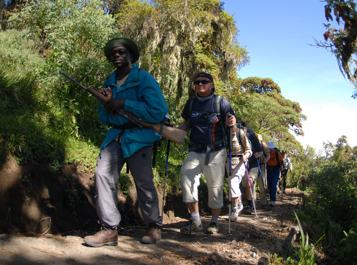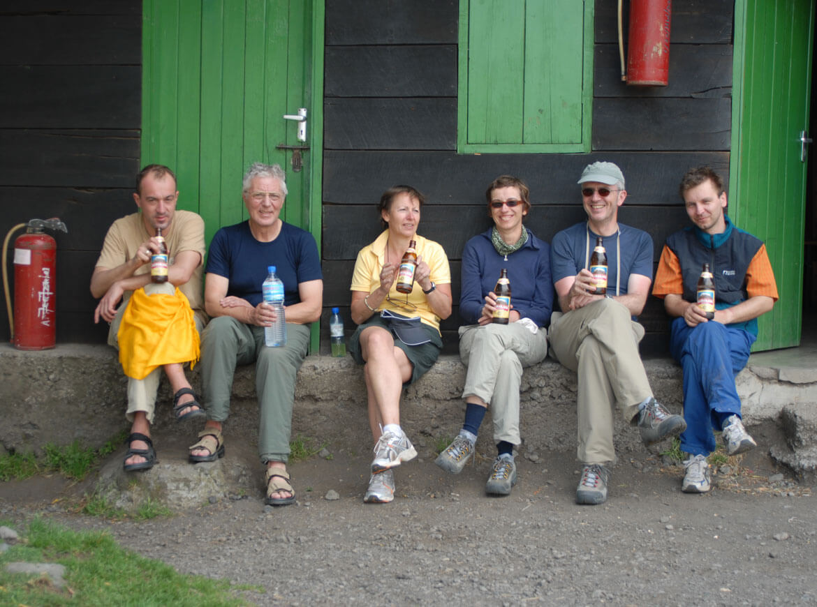 Tag 12: Abstieg durch die Erikazone und den Dschungel zum Parkeingang, von wo uns der Jeep ins Hotel bringt. Eine erfrischende Dusche und die Gipfelfeier stehen am Programm.