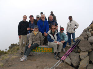Tag 5: Noch im Dunkeln brechen wir auf zum Mt. Meru (4568 M). Der Teils weiche Lavasand erschwert den Aufstieg und so rechnen wir mit gut 5 Stunden bis zum Gipfel, der uns mit einer herrlichen Aussicht über die Savanne belohnt. Vor uns baut sich majestätisch der Kibo auf. Der Abstieg erfolgt bis hinunter zur Miriakamba Hütte. 1200 HM